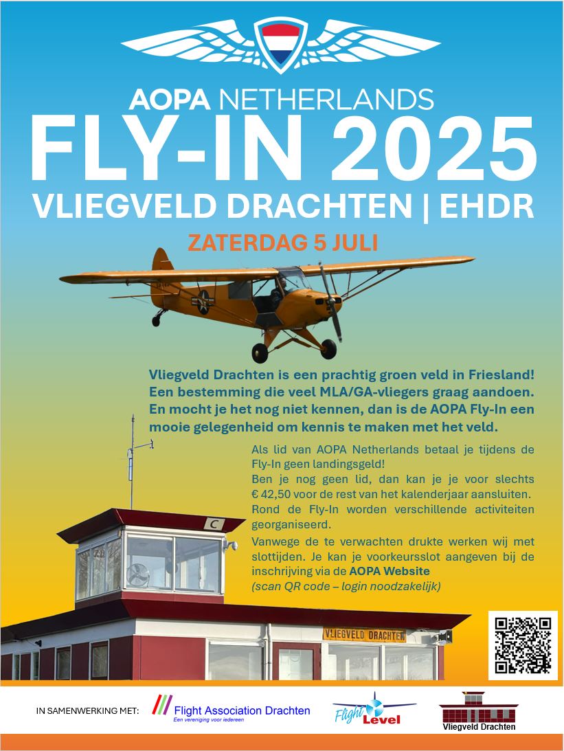Leden van AOPA* kunnen aan de Fly-In deelnemen. Schrijf je hier in. Je betaalt als lid geen landingsgeld en afhandelingskosten!